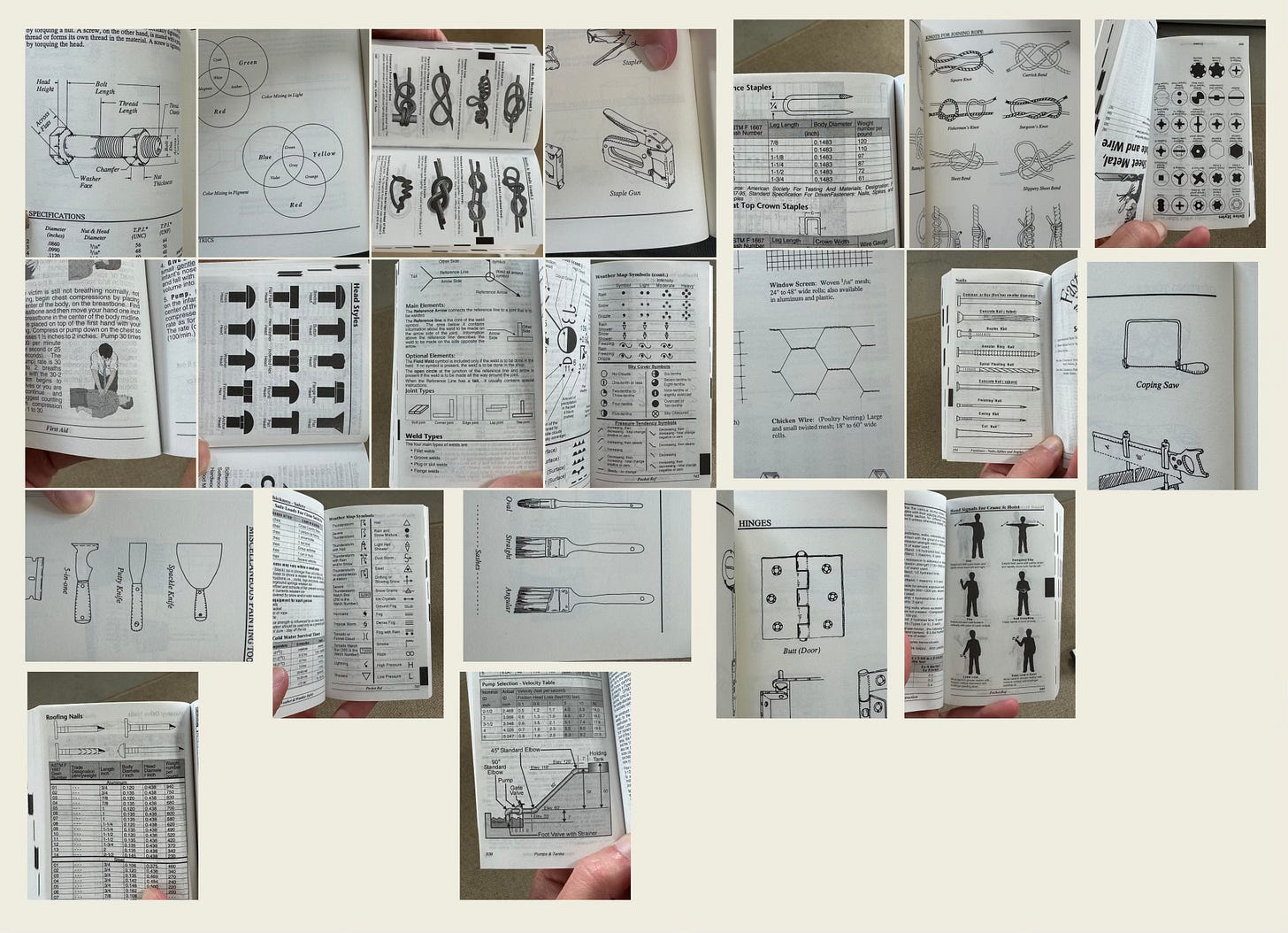 We started collecting reference materials: manuals, field guides, repair kits, handyman pocket-books. Things that are beautiful because they’re built to be useful and long-lasting.